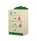 Komoda ja vyrobena z lamina šířky 18mm v krémové barvě. Dvířka skříně jsou z MDF 16mm. Komoda je natřená ekologickými barvami bezpečné pro děti. Úchytky na dveřích jsou dřevěné.